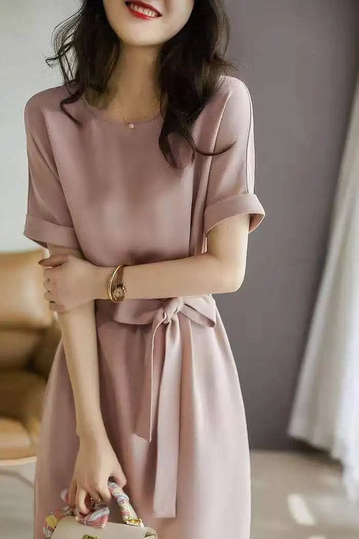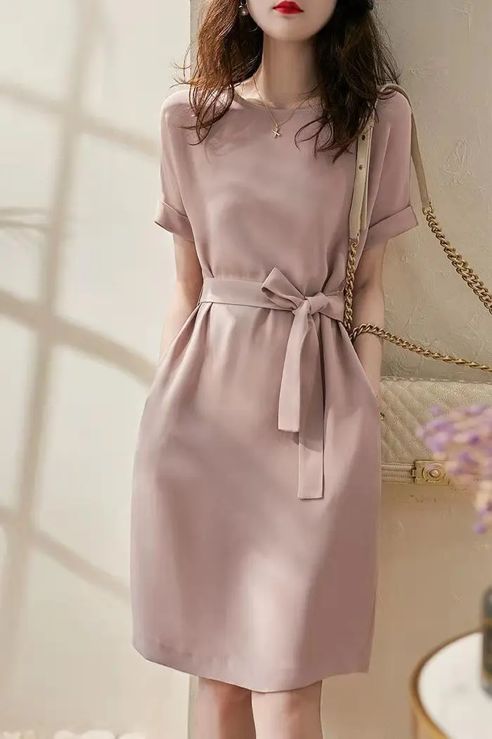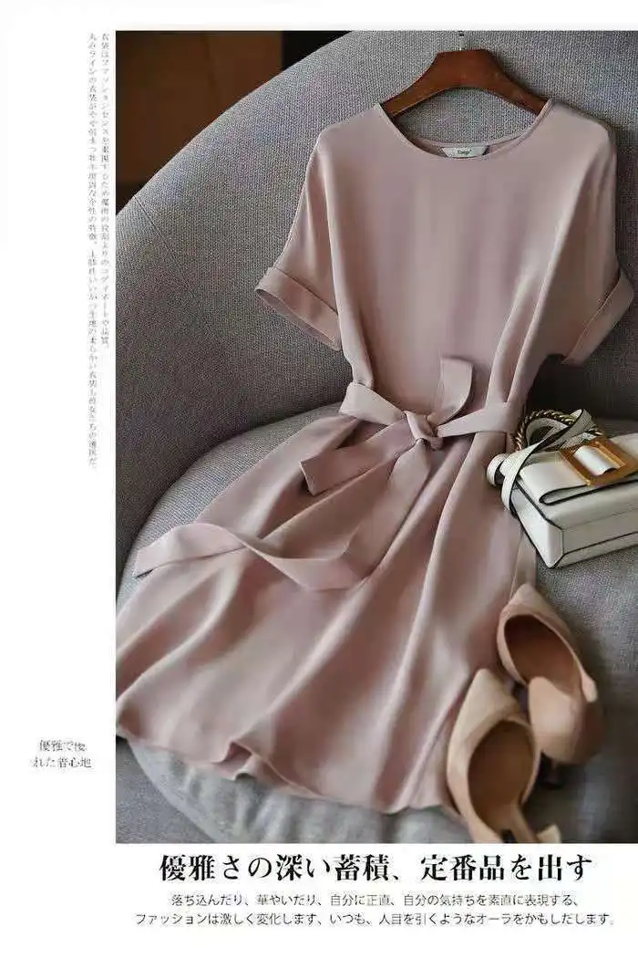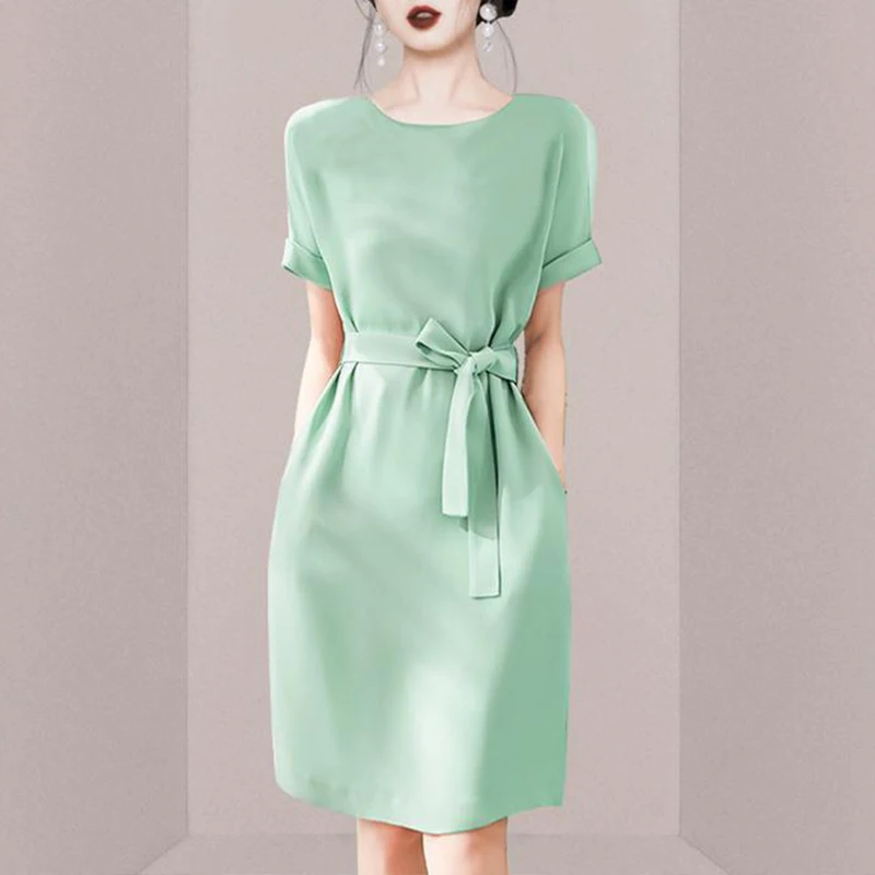 2022 verão novo estilo coreano elegante moda cor sólida vestido feminino o pescoço estético escritório senhora chique suor vestidos de fiesta