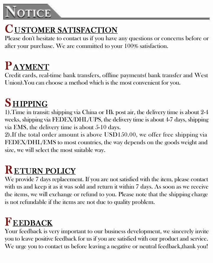 We are not responsible for any custom fees once the items have shipped. By purchasing our products, you consent that one or more packages may be shipped to you and may get custom fees when they arrive to your country.