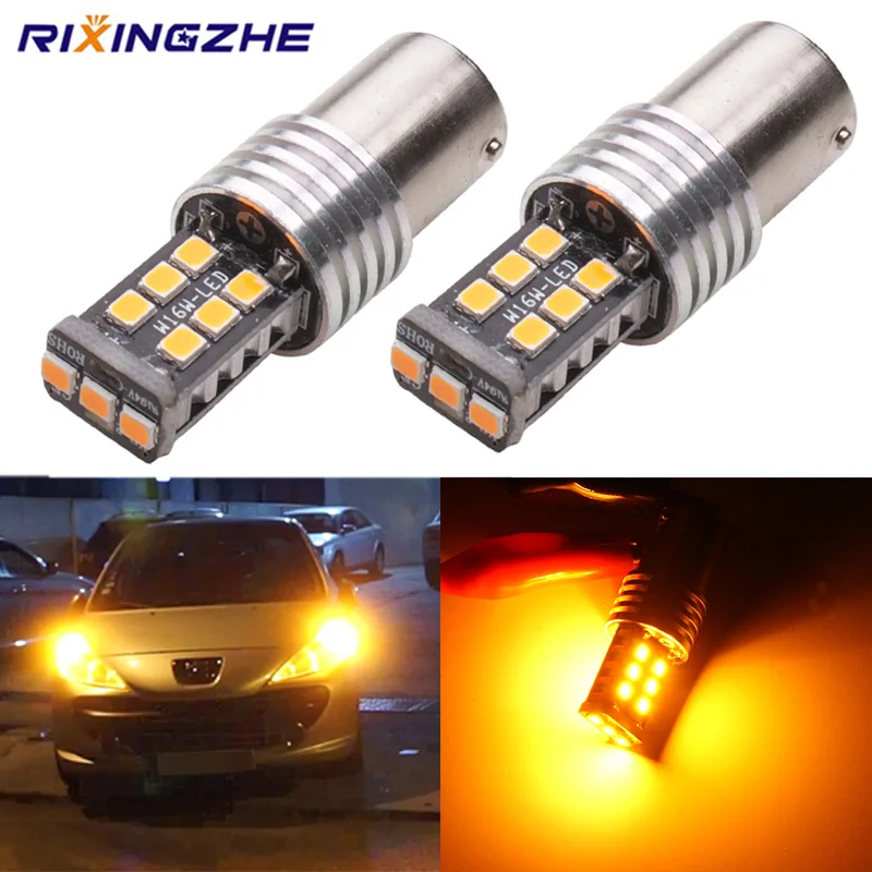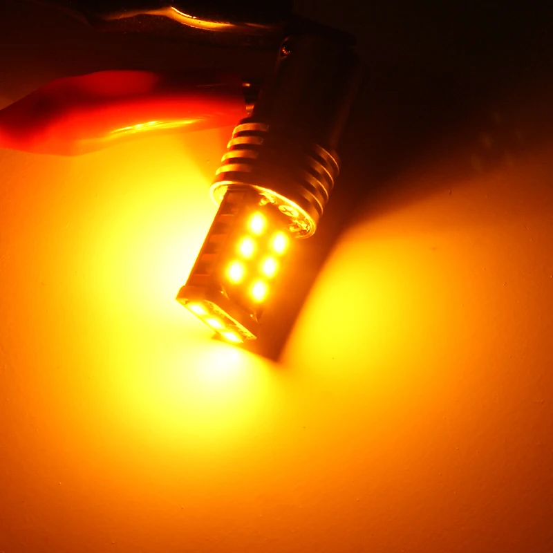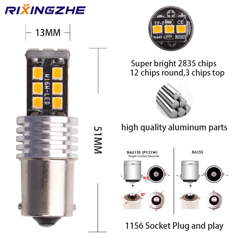 2pcs BAU15S py21w BA15S 1156 S25 LED 2835 15Smd Bulbs For Car Turn Signal Lights Brake lamp Amber canbus DC 12V No Hyper Flash