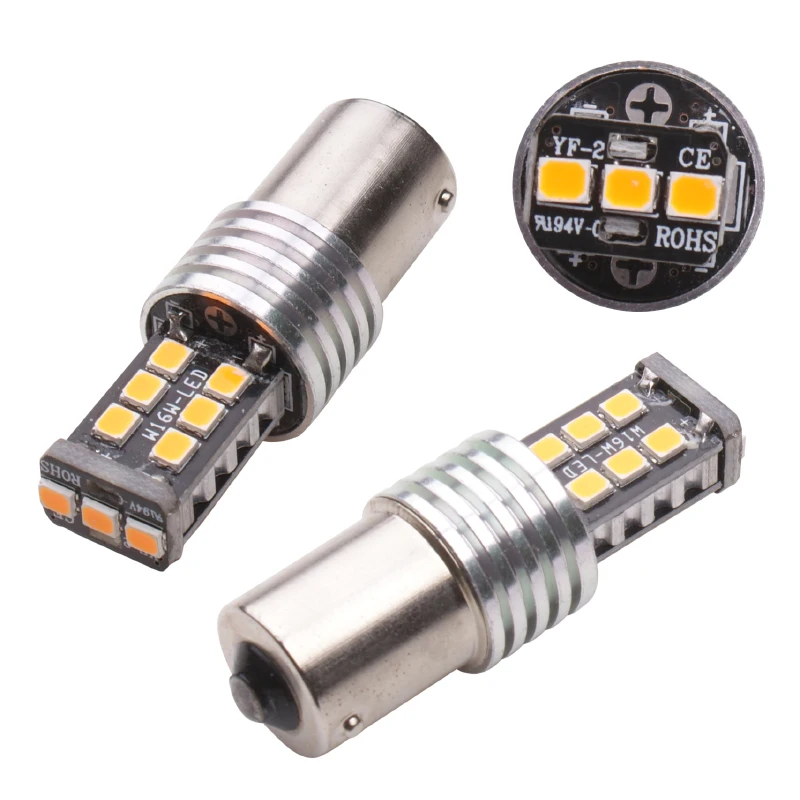 2pcs BAU15S BA15S 1156 S25 LED 2835 15Smd Bulbs For Car Turn Signal Lights Brake Fog lamp Amber canbus DC 12V 5W No Hyper Flash