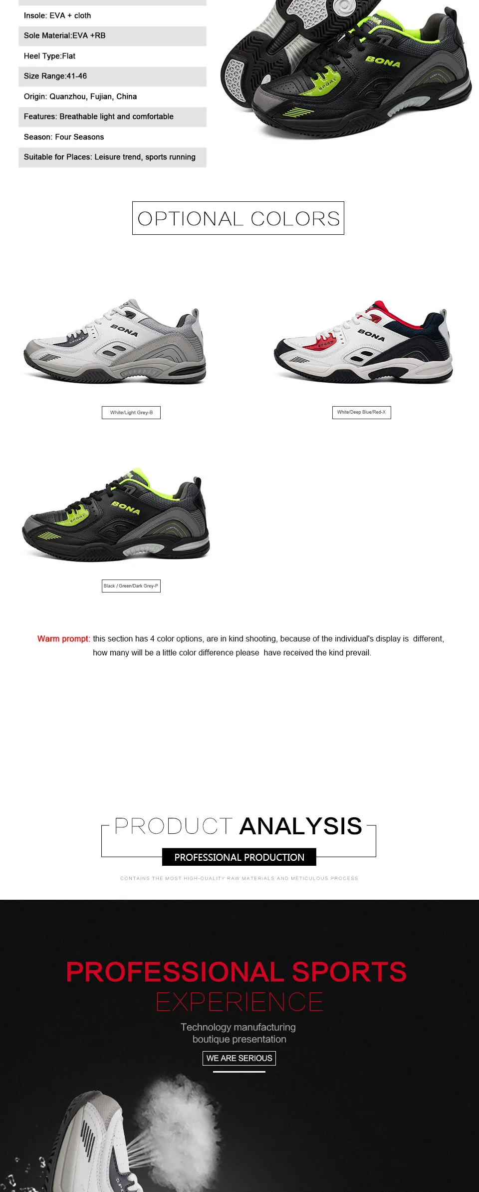BONA New Popular Style Men Tennis Shoes Outdoor Jogging Sneakers Lace Up Men Athletic Shoes Comfortable Light Soft Free Shipping