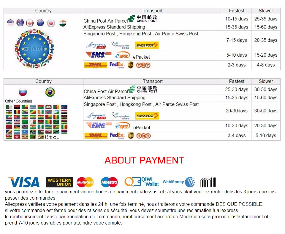 Packages from our warehouse in China will be shipped by ePacket or EMS depending on the weight and size of the product. Packages shipped from our US warehouse are shipped through USPS.