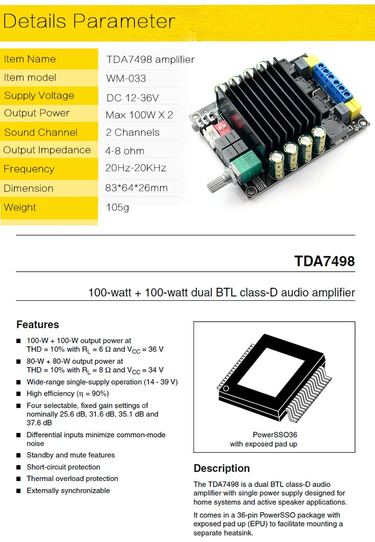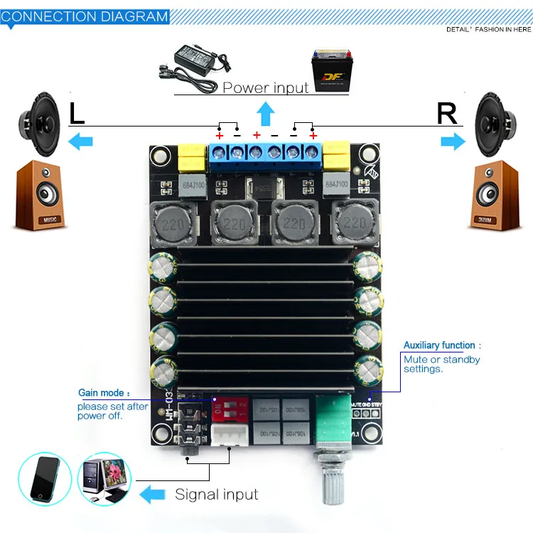 CIRMECH Digital Amplifier Audio Board TDA7498 Power Audio Amp 2.0 Class D Amplifiers Stereo HIFI amplifier DC12-36V 2*100W