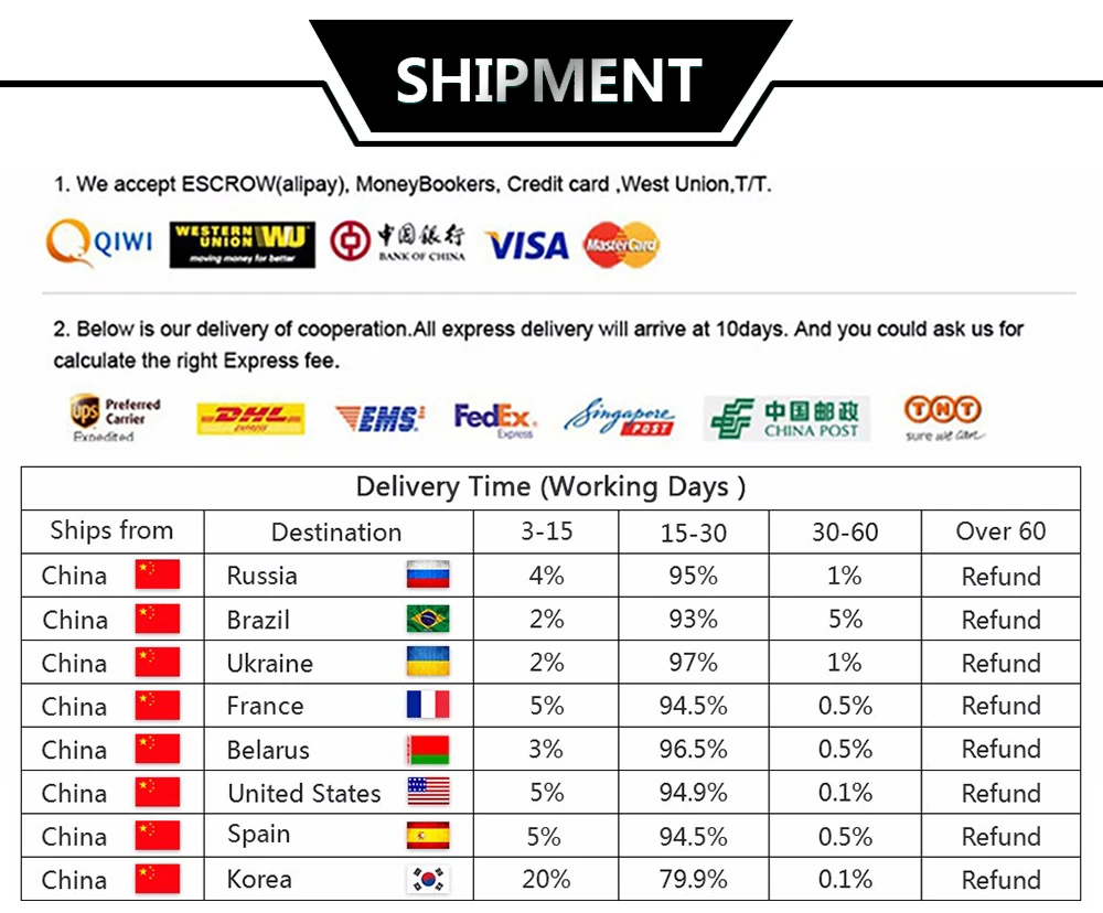 *You can submit refund requests within 15 days after the guaranteed period for delivery (45 days) has expired. You can do it by sending a message on Contact Us page