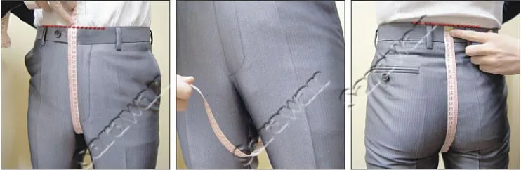 (Remark: please remove your pants belt when taking measurements of waist circumference; Don’t use Jeans as a reference, since they usually stand lower than suit pants)