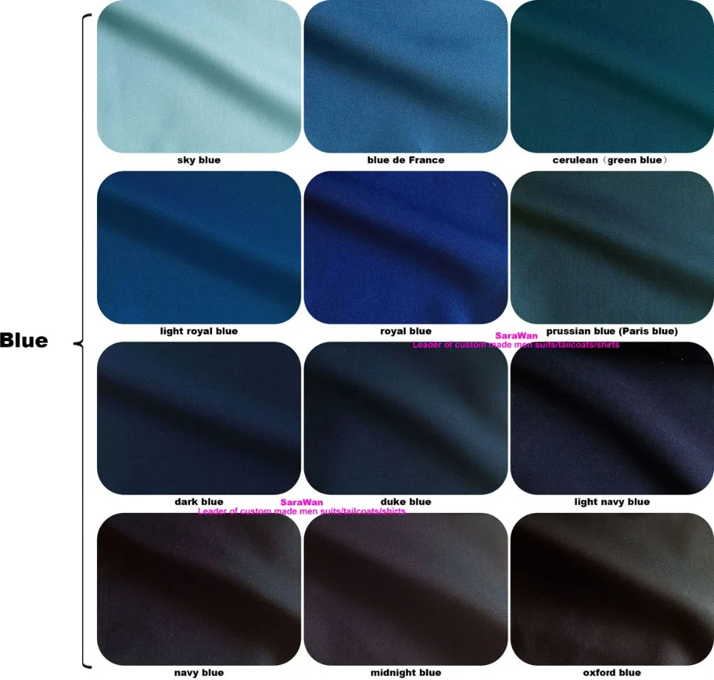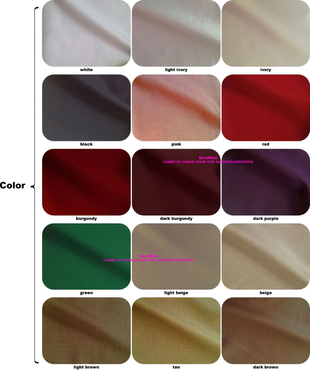 1.1.1 Multiple choices for colors and fabrics (here are the most frequently used ones, please feel free to contact me for other colors or fabrics) :