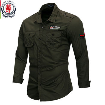 Fredd Marshall 2018 New 100% Cotton Military Shirt Men Long Sleeve Breathable Casual Shirt Man Solid Shirt With Embroidery FM115
