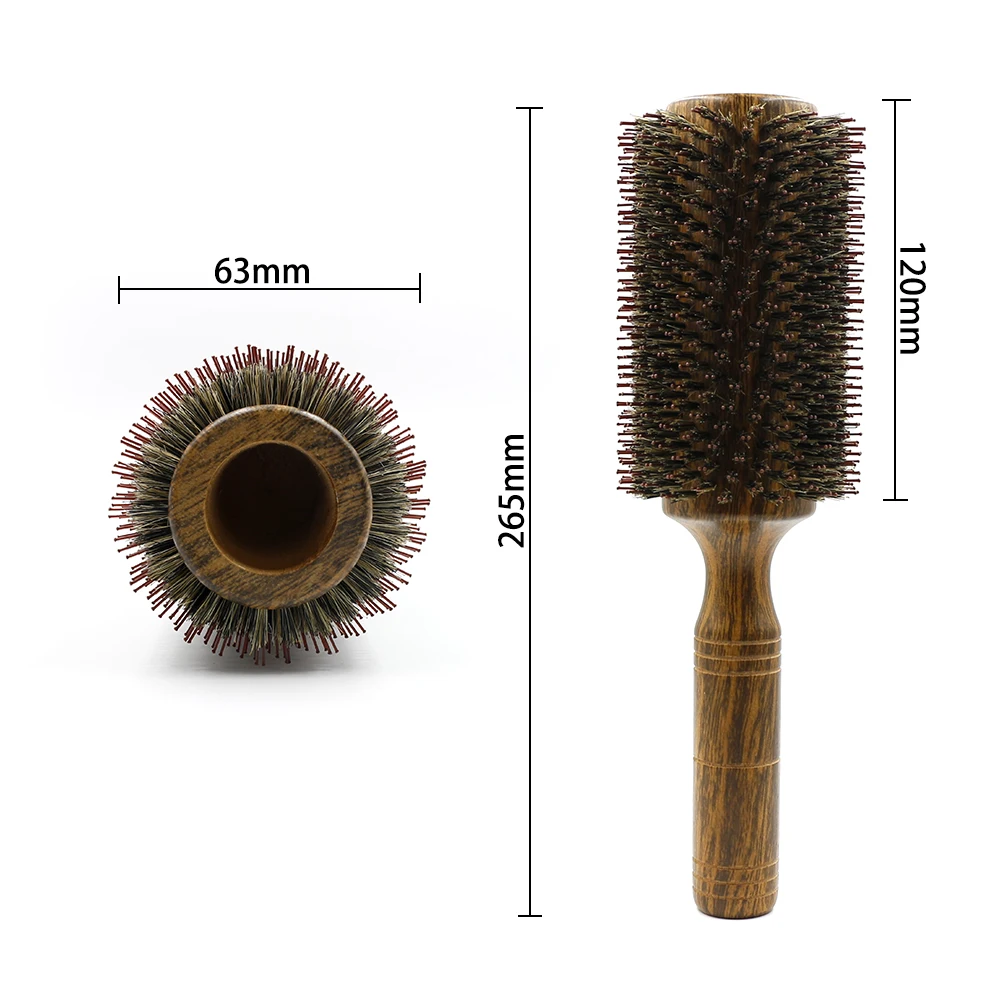 Professional High Quality 63 mm Boar Bristle Hair Wood Round Brush Long Hair Styling Comb Curly And Straight Hairdressing Comb