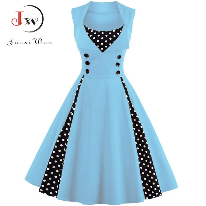 Women Robe Retro Vintage Dress 50s 60s Rockabilly Dot Swing Pin Up Summer Party Dresses Elegant Tunic Vestidos Casual