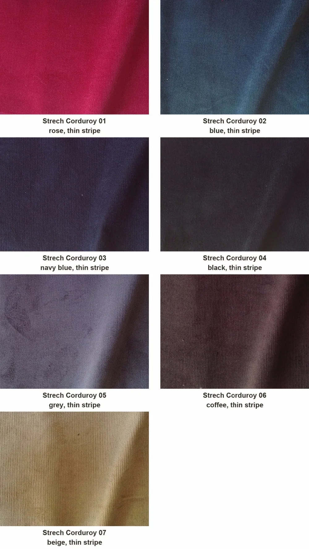 Fabrics/Materials: Stretch Corduroy (98% cotton, 2% elastane)