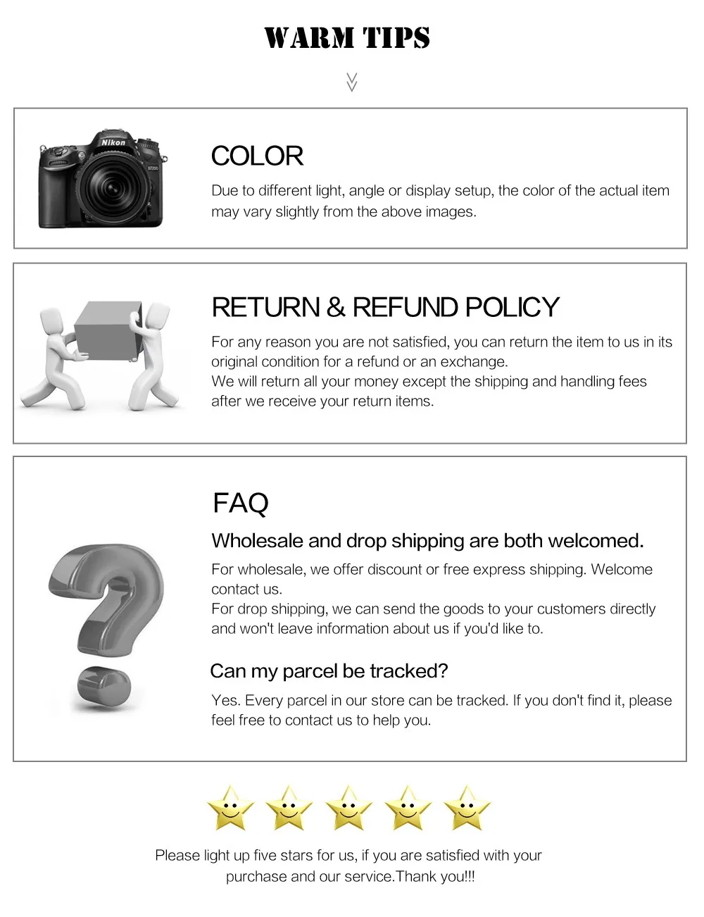 If you do not want the product you’ve received you may request a refund but you must return the item at your expense and the item must be unused.