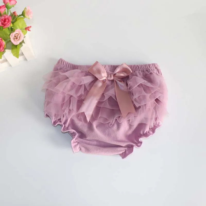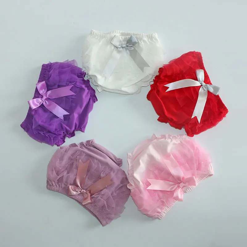 Summer Baby Bloomers Princess Bow Girls Short Pants Ruffle Mesh Infant Toddler Cotton Panties